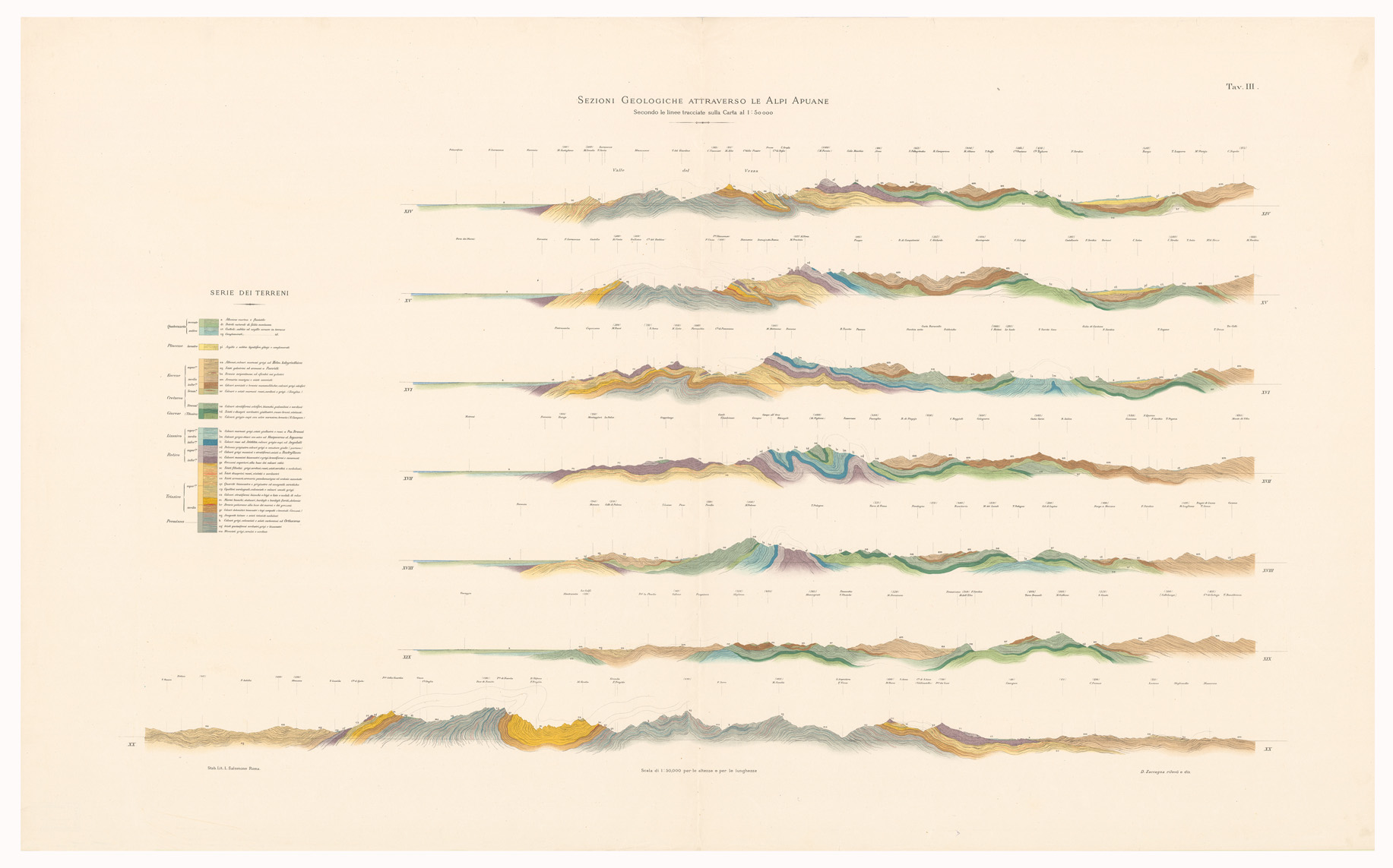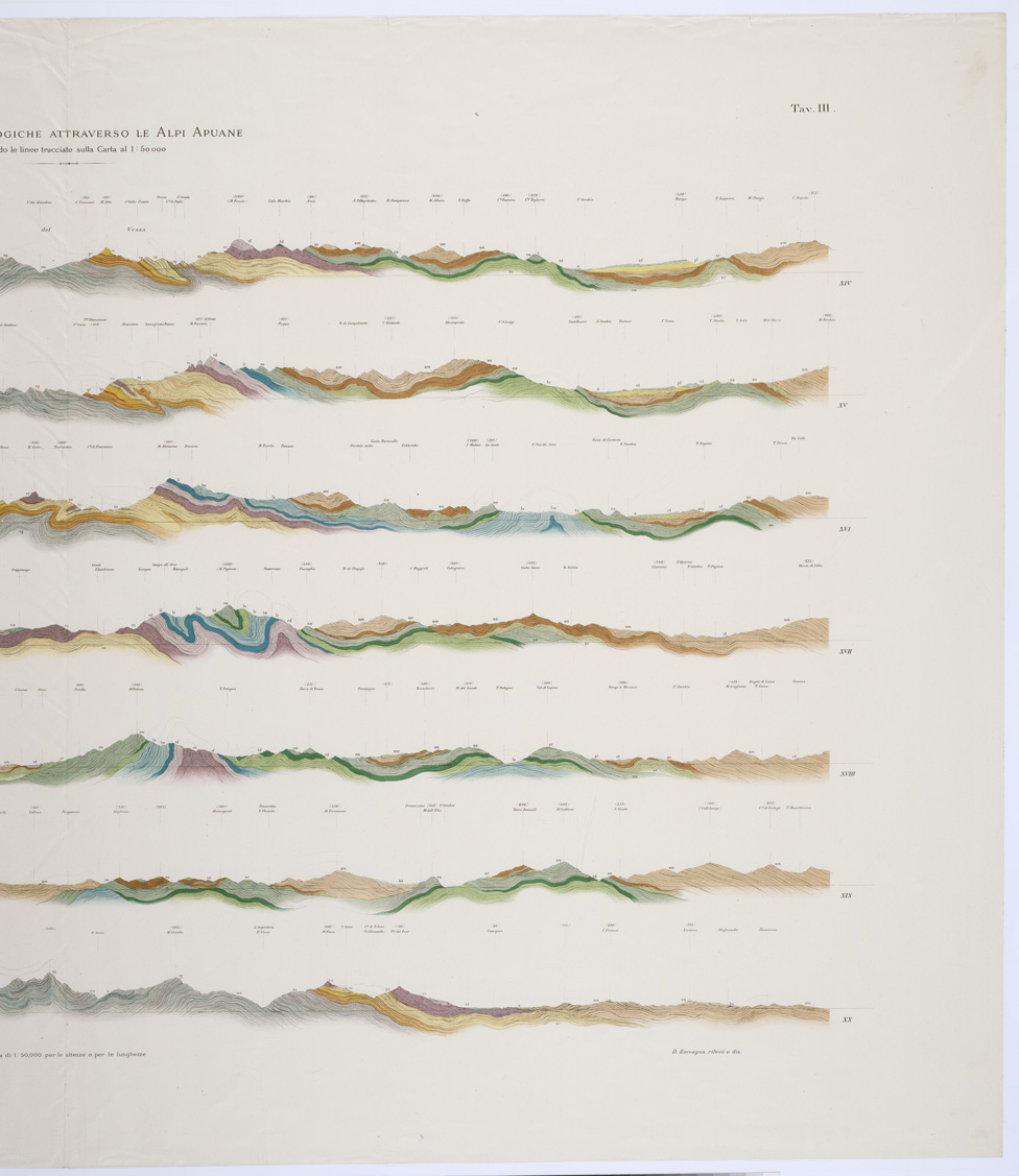 CARTA GEOLOGICA DELLE ALPI APUANE IN 4 FOGLI E 3 TAVOLE DI SEZIONI - SEZIONI GEOLOGICHE Tavola III