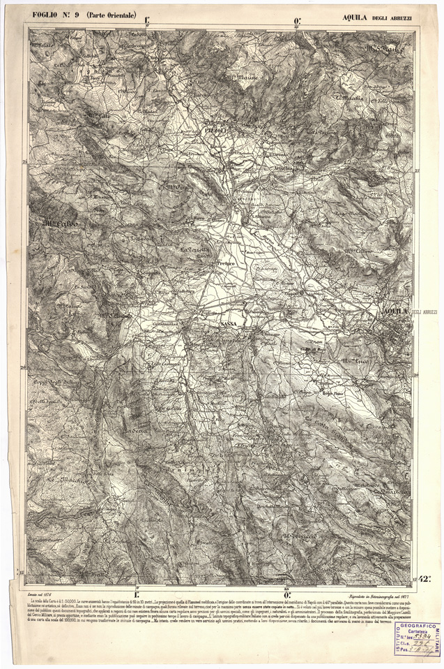 CARTA DELL' ITALIA MERIDIONALE EDITA DALL'ISTITUTO TOPOGRAFICO MILITARE ITALIANO - Foglio 9 parte orientale - Aquila degli Abruzzi