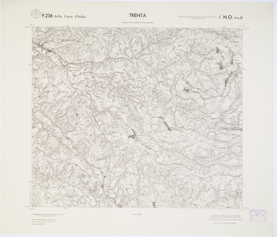 CARTA TOPOGRAFICA DELLA CALABRIA - Foglio 236 I N.O. SEZ.B - Trenta