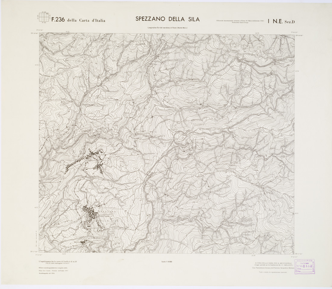 CARTA TOPOGRAFICA DELLA CALABRIA - Foglio 236 I N.E. SEZ.D - Spezzano della Sila