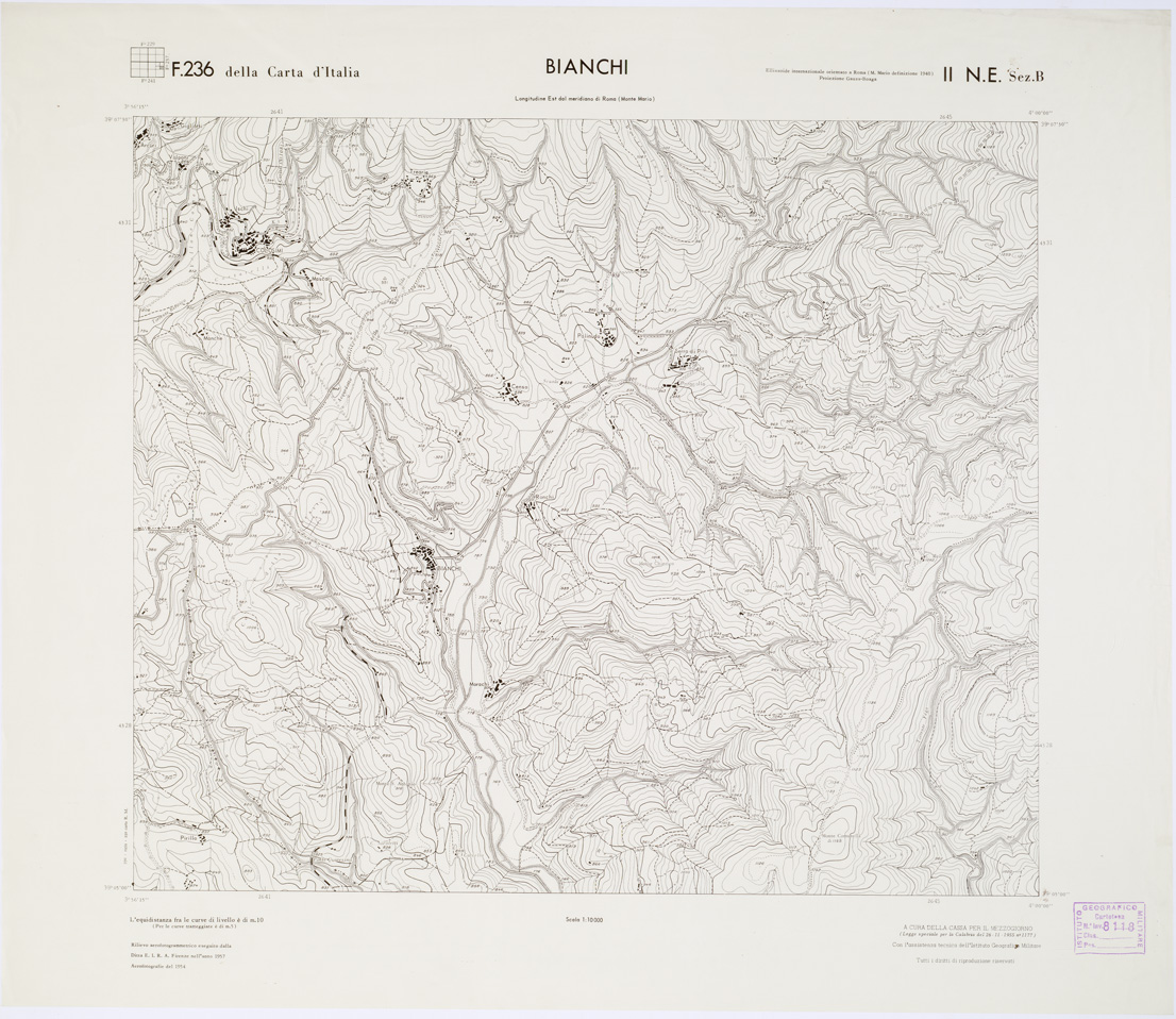CARTA TOPOGRAFICA DELLA CALABRIA - Foglio 236 II N.E. SEZ.B - Bianchi