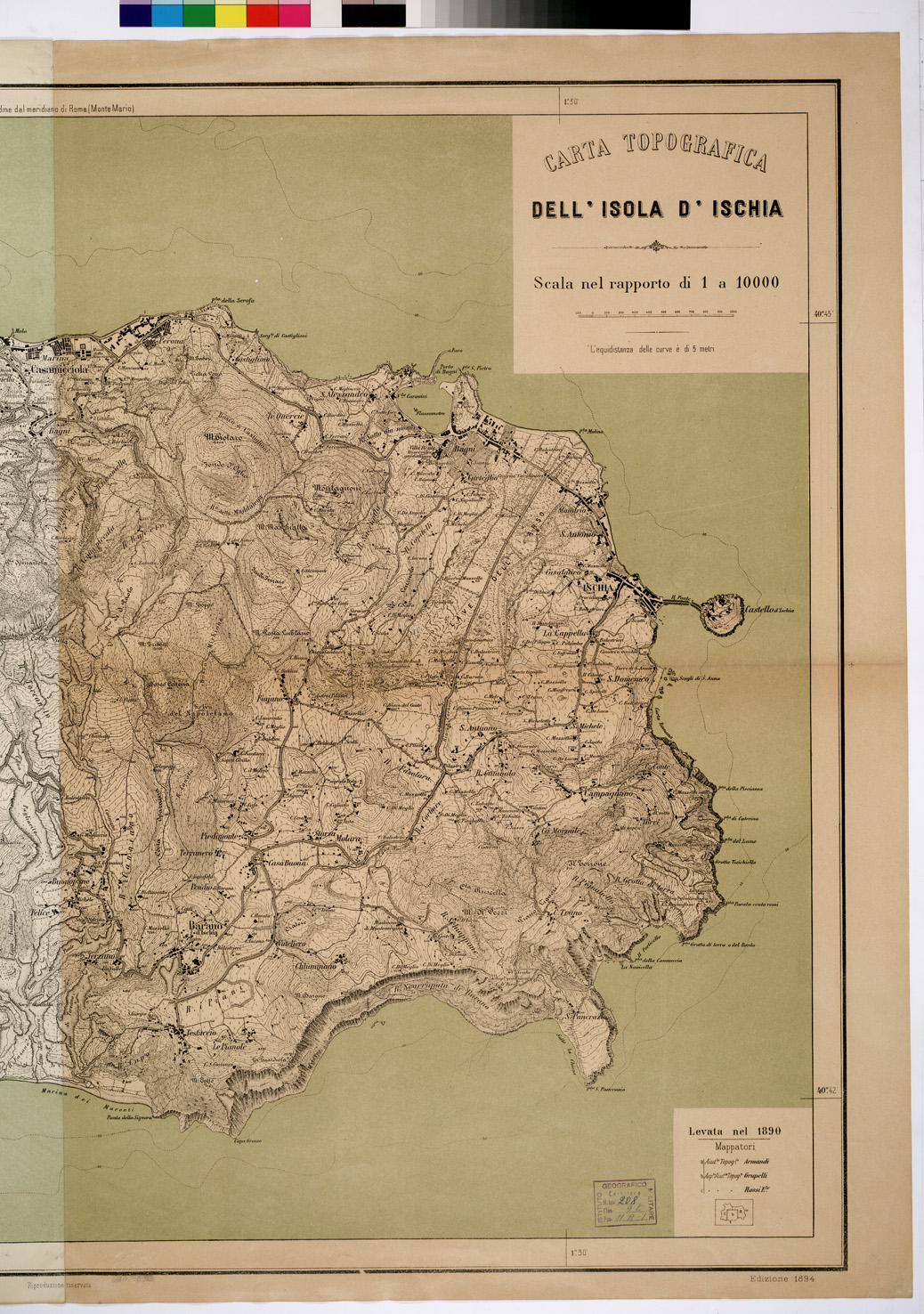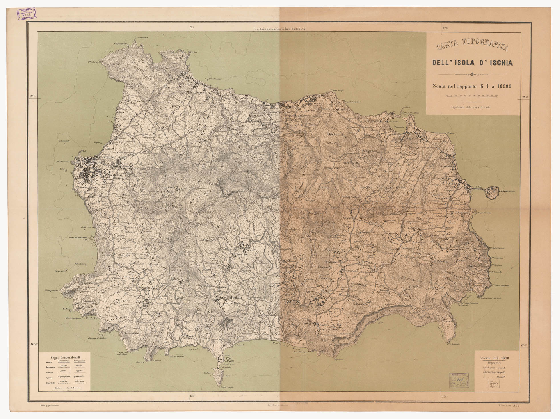 CARTA TOPOGRAFICA DELL'ISOLA D'ISCHIA. I.G.M.