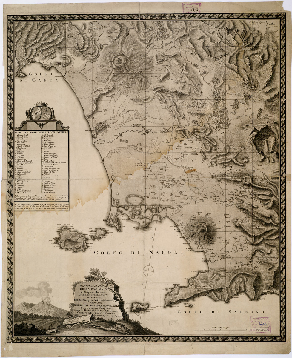 "Autore G. A. Rizzi Zannoni, Napoli. Incisione su rame. Rappresentazione orografica a tratteggio."