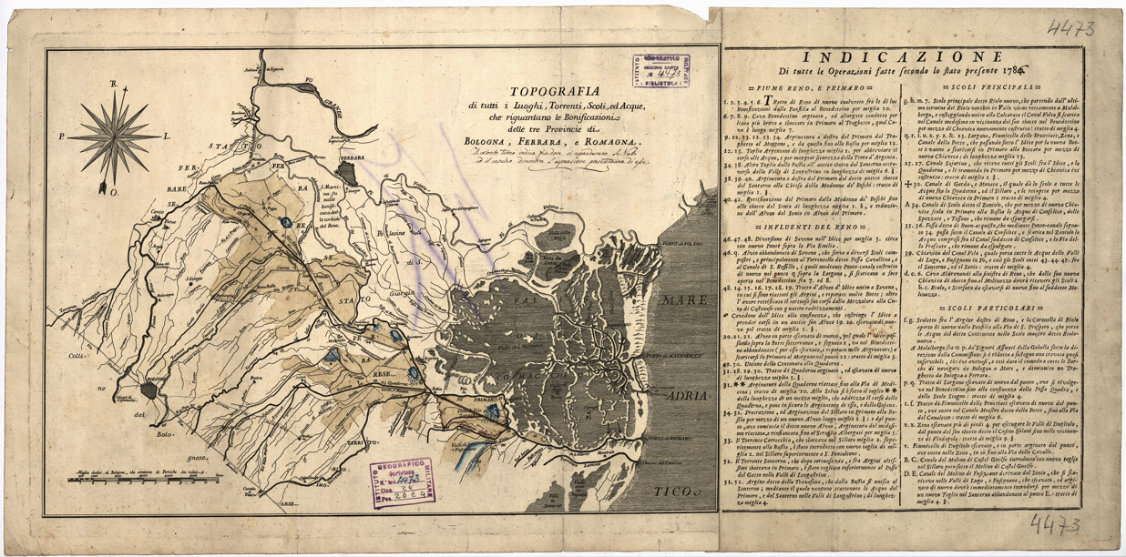 TOPOGRAFIA DI TUTTI I LUOGHI, TORRENTI, SCOLI, ED ACQUE CHE RIGUARDANO LE BONIFICAZIONI DELLE TRE PROVINCIE DI BOLOGNA, FERRARA E ROMAGNA