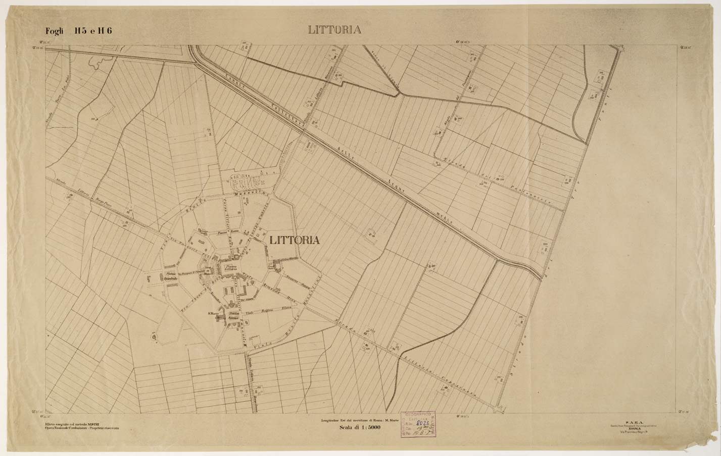 RILIEVO DELLA ZONA DI LITTORIA COL METODO NISTRI - Foglio H5-H6 - Littoria
