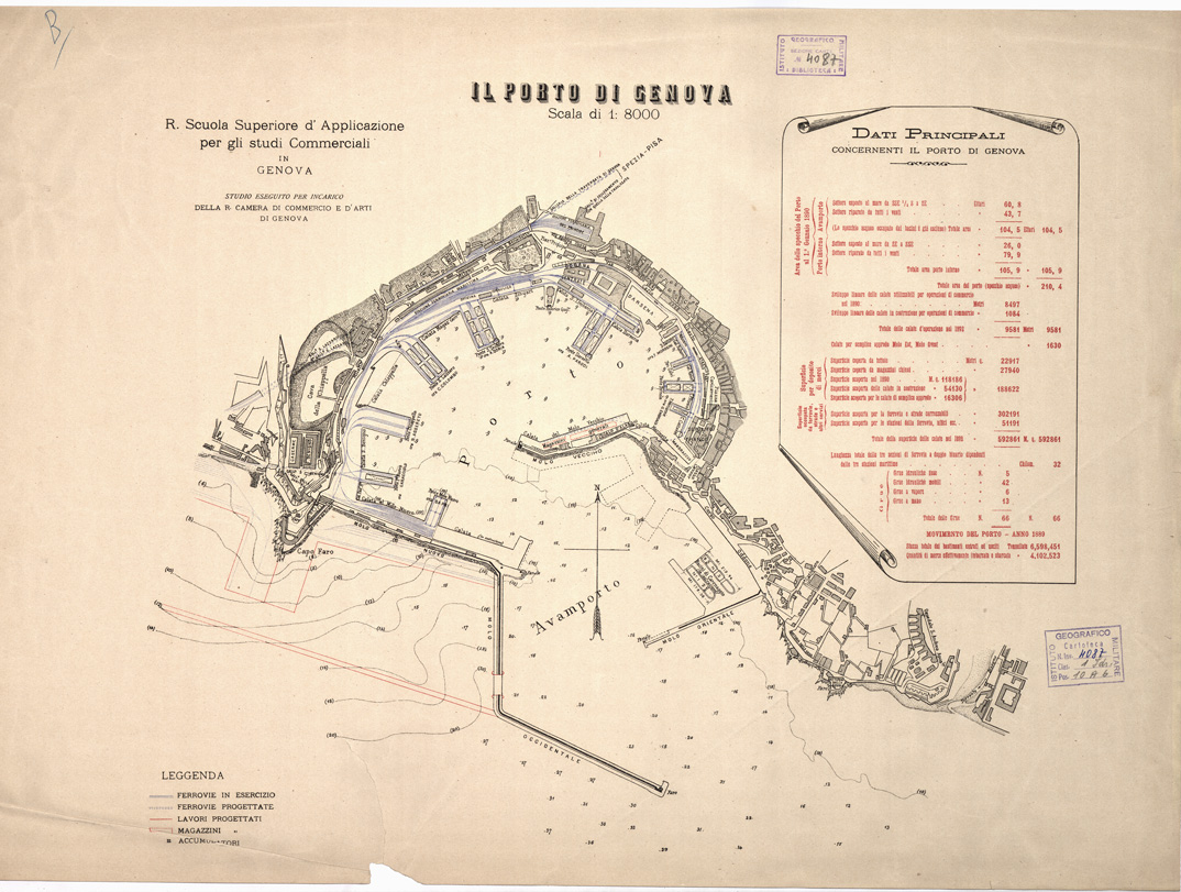 "R. Scuola Superiore d'Applicazione per gli studi Commerciali in Genova. Studio eseguito per incarico della R. Camera di Commercio e d'Arti di Genova. Rappresentazione orografica planimetrica."