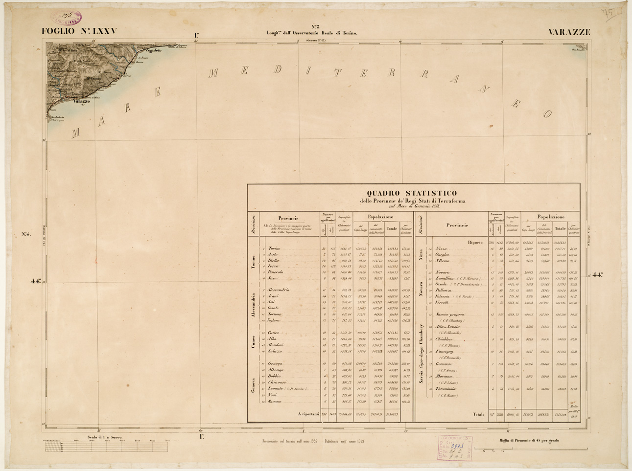 CARTA TOPOGRAFICA DEGLI STATI IN TERRAFERMA... - Foglio 75 - Varazze