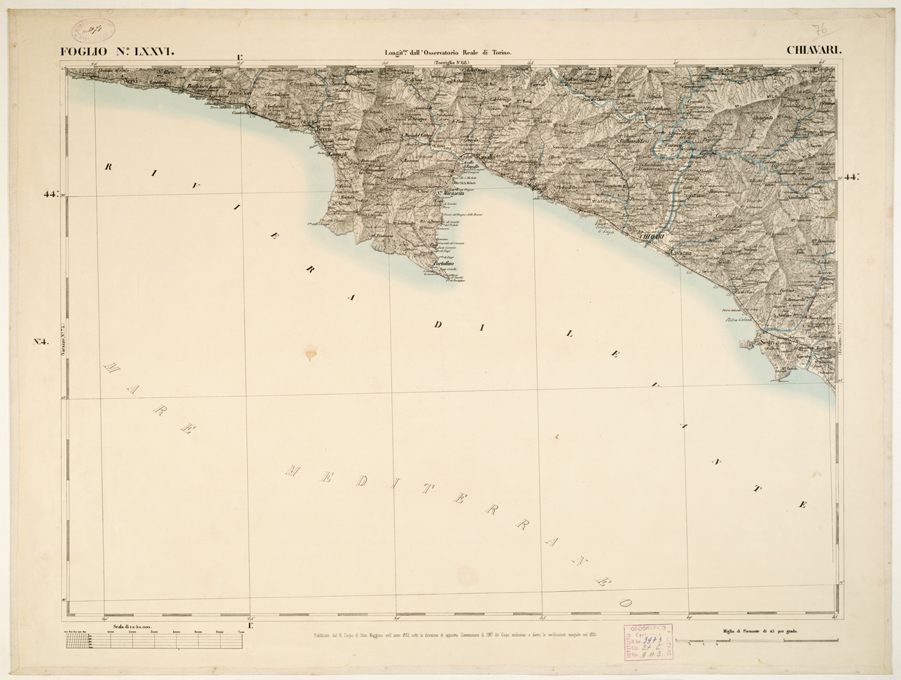 CARTA TOPOGRAFICA DEGLI STATI IN TERRAFERMA... - Foglio 76 - Chiavari