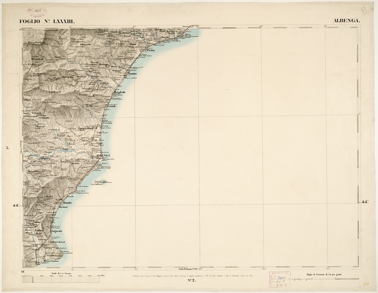 CARTA TOPOGRAFICA DEGLI STATI IN TERRAFERMA... - Foglio 83 - Albenga