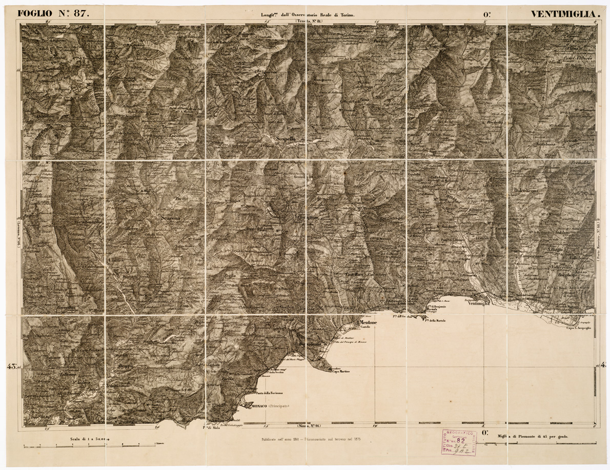 CARTA TOPOGRAFICA DEGLI STATI IN TERRAFERMA... - Foglio 87 - Ventimiglia