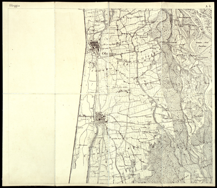 "Carta in nove fogli ad uso delle esercitazioni campali, senza data né firma. Mostra l'orografia col tratteggio a luce zenitale indica le ferrovie, le strade e sentieri, boschi e terreni incolti, i confini comunali. Vi sono correzioni a mano, in rosso. Il foglio C.3 contiene la legenda dei segni convenzionali. Annesso un piccolo quadro d'unione. Lavoro eseguito dall'Ufficio Tecnico nel 1863. Cfr. MORI A., La cartografia ufficiale in Italia, ecc., pag. 139. La stessa carta è nella cartella d'archivio n. 59 documento n. 27."