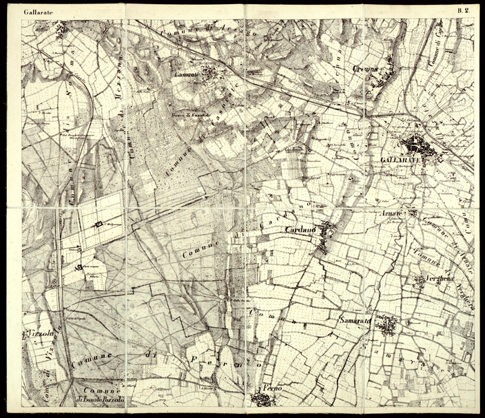 CARTA TOPOGRAFICA DEL CAMPO DI SOMMA ALLA SCALA DI 1:20.000 (s. d., s. a.) - Foglio B.2 - Gallarate