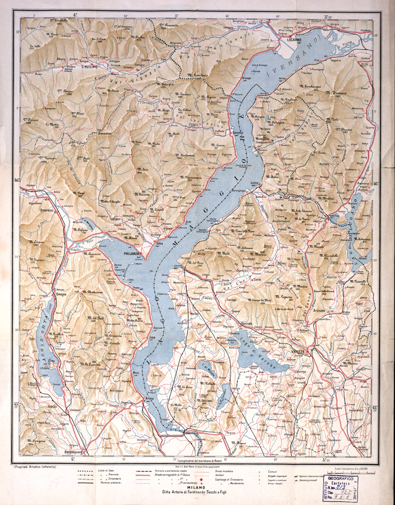 "Rappresentazione orografica a tratteggio. Ditta Artaria di F. Sacchi e Figli, Milano. Stab. Lit. Ach. Paris (FI)"