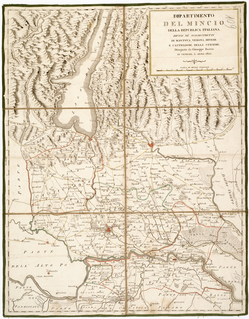 DIPARTIMENTO DEL MINCIO DELLA REPUBBLICA ITALIANA DIVISO NEI SUOI DISTRETTI DI MANTOVA, VERONA, REVERE E CASTIGLIONE DELLE STIVIERE DISEGNATO DA GIUSEPPE BOERIO. IN VENEZIA.