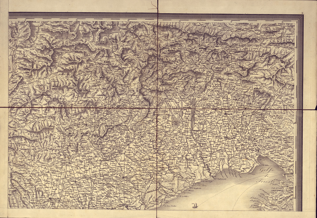 CARTA GEOGRAFICA E POSTALE DEL REGNO LOMBARDO VENETO COMPILATA SULLE MIGLIORI CARTE GENERALI E PROVINCIALI ESISTENTI, DISEGNATA DA C. PINCHETTI SOTTO LA DIREZIONE DELL'INGEGNERE GEOGRAFO G. BRENNA E INCISA DA GIUS. PEZZE - Foglio 2