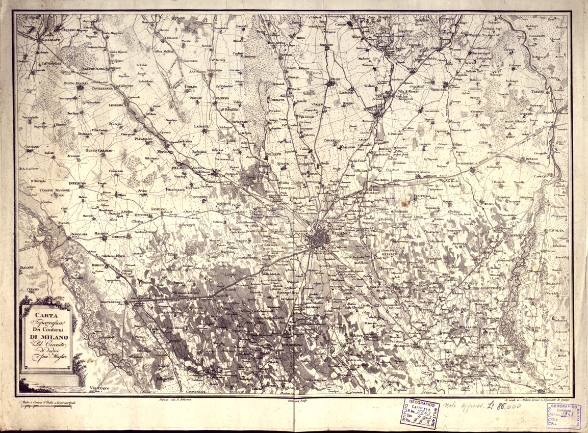 CARTA TOPOGRAFICA DEI CONTORNI DI MILANO...