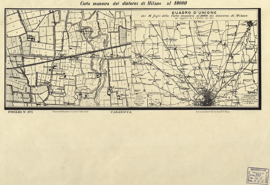CARTA MANOVRA DEI DINTORNI DI MILANO - Foglio 16 - Casanova e quadro d'unione