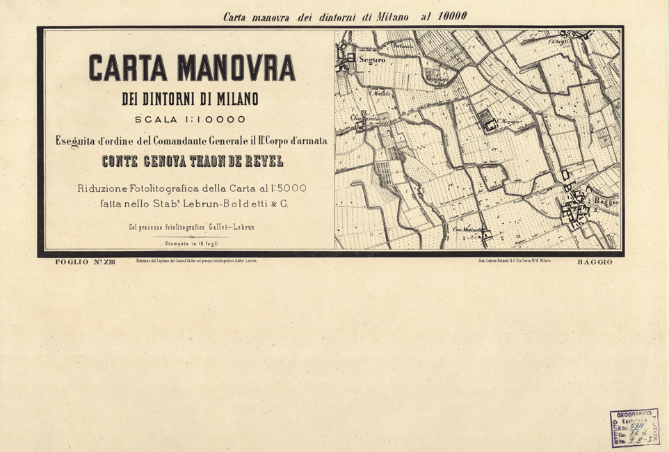 CARTA MANOVRA DEI DINTORNI DI MILANO - Foglio 13 - Baggio e titolo