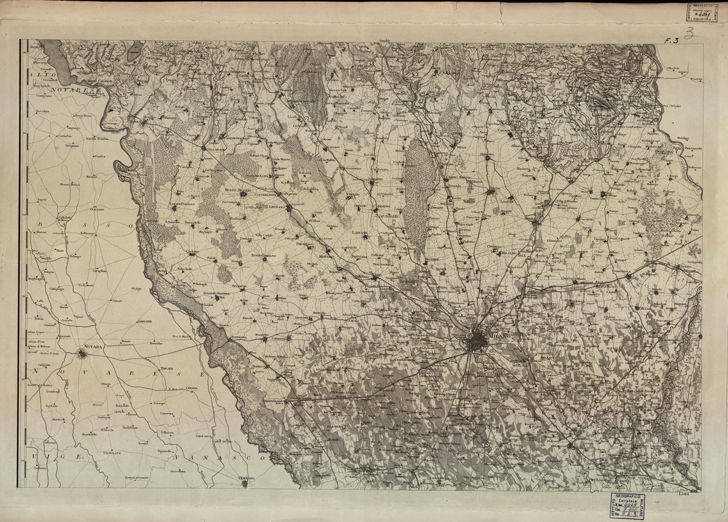 CARTA TOPOGRAFICA DEL MILANESE E MANTOVANO ESEGUITA DIETRO LE PIU' ESATTE DIMENSIONI GEOGRAFICHE ED OSSERVAZIONI ASTRONOMICHE - Foglio 3