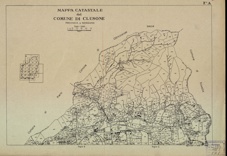 MAPPE CATASTALI D'ITALIA - PROVINCIA DI BERGAMO - Foglio A- COMUNE DI CLUSONE