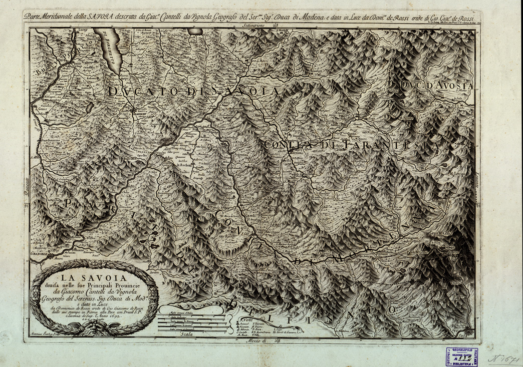 LA SAVOIA DIVISA NELLE SUE PRINCIPALI PROVINCIE DA GIACOMO CANTELLI DA GIACOMO CANTELLI DA VIGNOLA, GEOGRAFO DEL DUCA DI MODENA, DATA IN LUCE DA DOMENICO DE ROSSI IN ROMA ALLA PACE - Parte settentrionale -Tavola 2