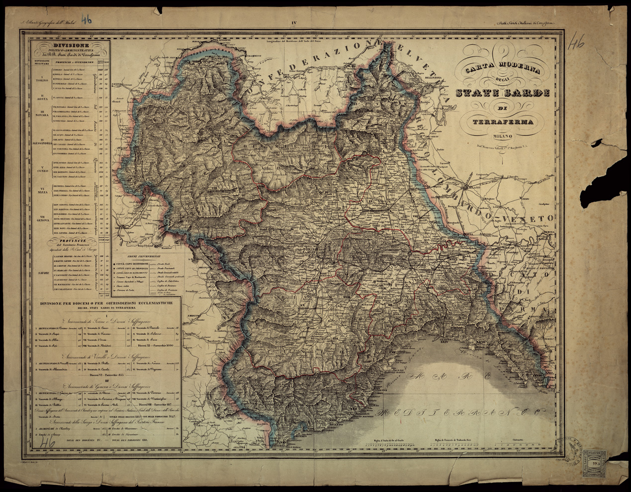 CARTA MODERNA DEGLI STATI SARDI IN TERRAFERMA, MILANO, DOTT. FRANC. VALLARDI. (s. d.). Foglio IV dell'Atlante Geografico dell'Italia