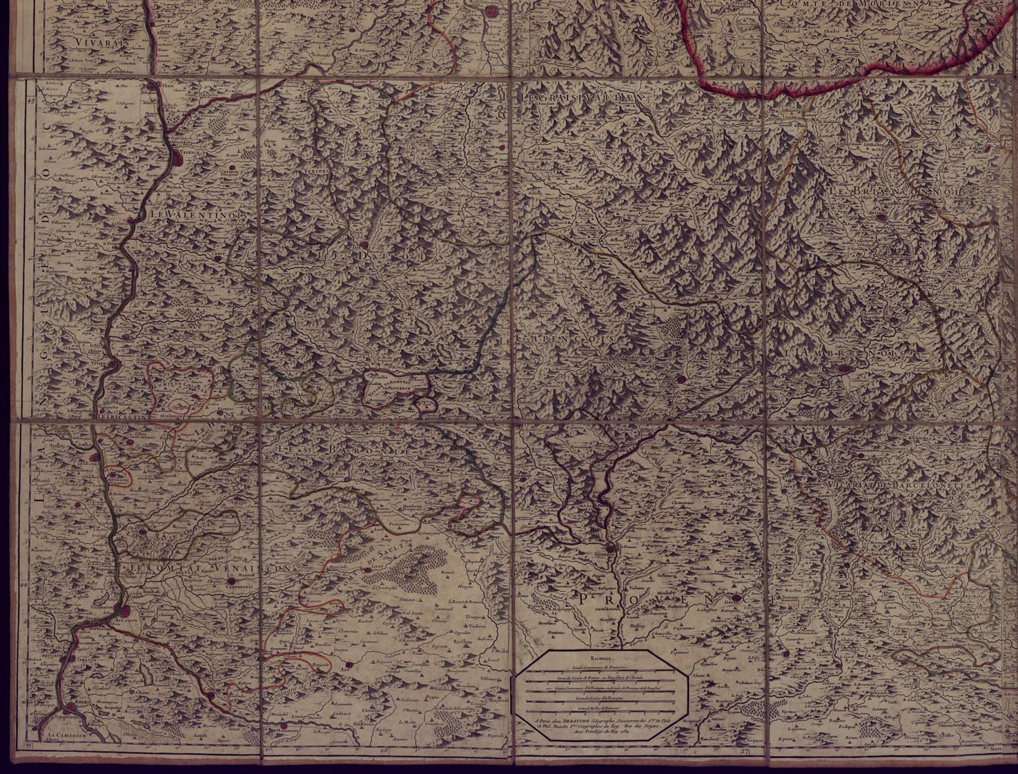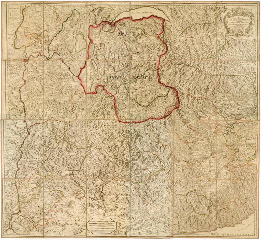LES ESTATS DE SAVOYE ET DE PIEMONT, LES DAUPHINE LA BRESSE PARTIE DU LIONNOIS ET DE LA PROVENCE ETC. DEDIEZ AU ROY PAR SON TRES HUMBLE ECC. HUBERT JAILLOT. A PARIS CHEZ DEZAUCHE