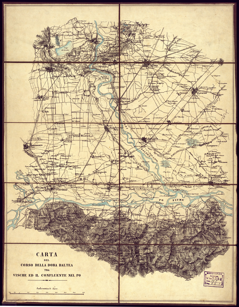CARTA DEL CORSO DELLA DORA BALTEA TRA VISCHE ED IL CONFLUENTE NEL PO