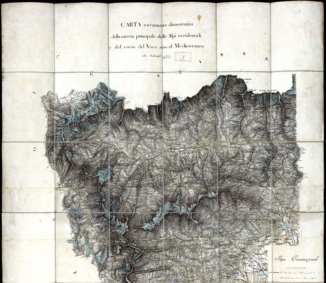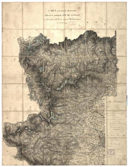 CARTA MERAMENTE DIMOSTRATIVA DELLA CATENA PRINCIPALE DELLE ALPI OCCIDENTALI E DEL CORSO DEL VARO SINO AL MEDITERRANEO - Foglio 1