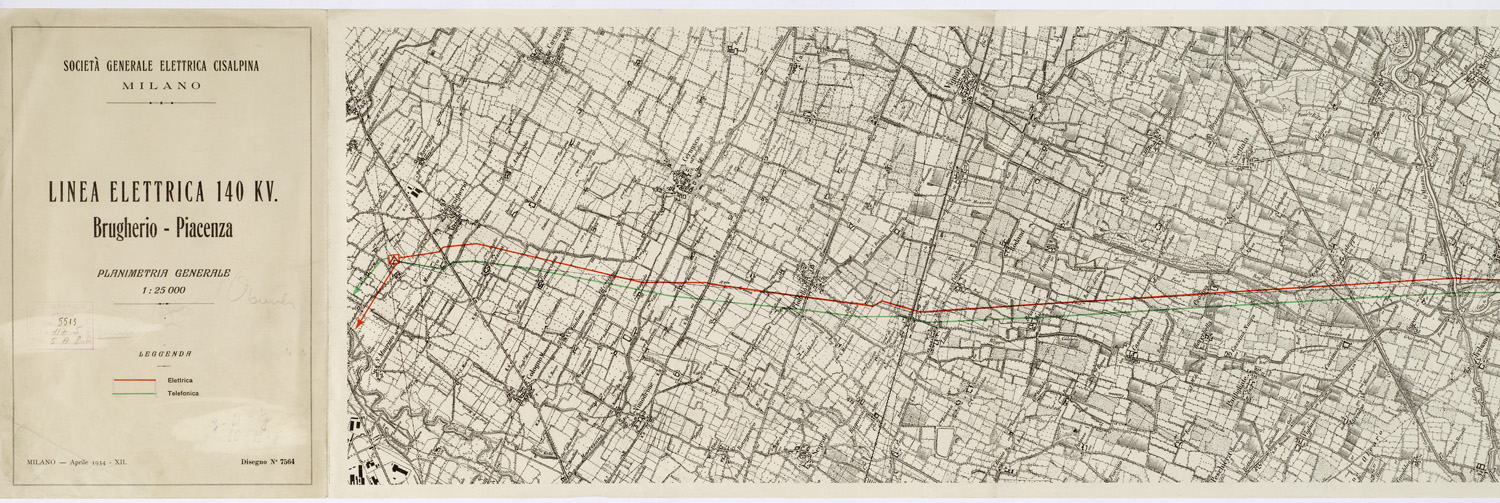 SOCIETA' GENERALE ELETTRICA CISALPINA MILANO - LINEE ELETTRICHE 140 KV. - Brugherio - Piacenza