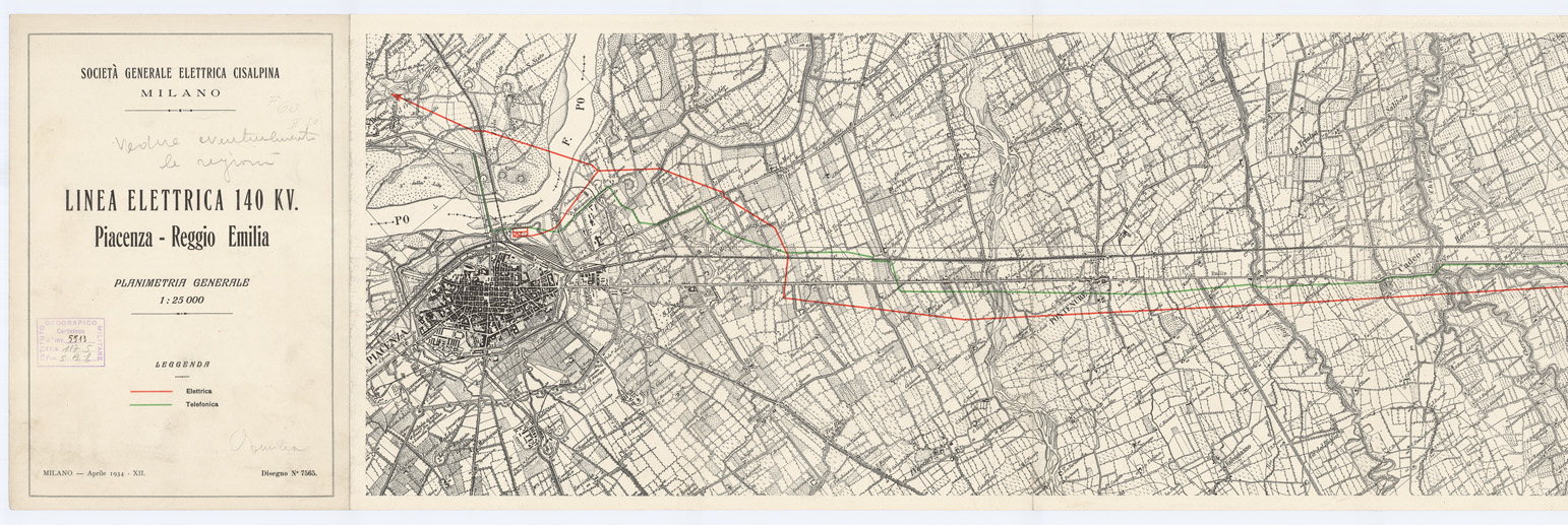 SOCIETA' GENERALE ELETTRICA CISALPINA MILANO - LINEE ELETTRICHE 140 KV. - Piacenza - Reggio Emilia