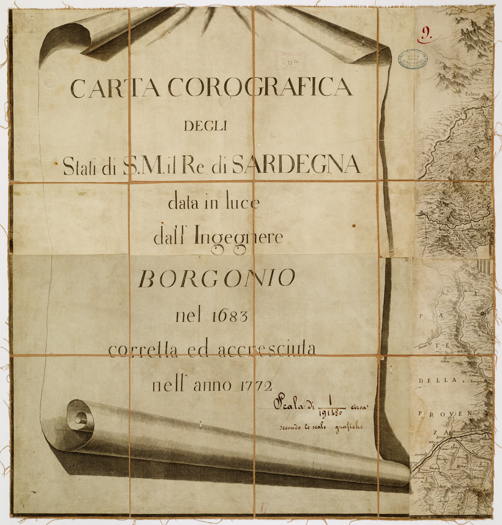 "...DATA IN LUCE DALL'INGEGNERE BORGONIO NEL 1683 CORRETTA ED ACCRESCIUTA NELL'ANNO 1772. Nuova edizione della così detta "Carta di Madama Reale" costruita dall'ingegnere cartografo G. T. Borgonio disegnatore e calligrafo, addetto fin dal 1650 alla corte Sabauda, e pubblicata nel 1680 in 15 fogli incisi su rame. La carta del Borgonio rappresenta un grande progresso nella cartografia del Piemonte essendo essa di gran lunga superiore alle precedenti produzioni cartografiche di quella regione. Per quanto non poggiata su una vera e propria base geometrica, sì da doverne accusare l'inesattezza nell'orientamento e nella misura delle distanze, essa nondimeno è particolarmente pregevole sia per la ricchezza di informazioni relative agli abitati, strade, corsi d'acqua, sia per la rappresentazione dell'orografia efficacemente dimostrata alla cavaliera. La carta del Borgonio rimase famosa ed apprezzata per circa un secolo e mezzo: ad essa si ispirarono successivi cartografi come il Coronelli, De Fer, Mortier, R. de Vaugondy. Divenuta rarissima se ne pubblicarono nuove edizioni una delle quali a Londra nel 1765 a cura di A. Dury, e l'altra a Torino nel 1772 a cura dell'incisore piemontese Stagnone tratta dagli stessi rami del Borgonio ma corretti ed arricchiti, e con l'aggiunta di nuovi sì da estendere la carta alla Liguria e a parte della Lombardia. I rami della carta del Borgonio furono presi dai francesi nel 1792 e restituiti soltanto nel 1815. Una delle copie tratte da essi servì a Napoleone per la preparazione della battaglia di Marengo. Il rifacimento dello Stagnone posseduto dalla Biblioteca dell'I.G.M., si compone di 12 fogli montati su tela a stacchi. Annessa una riproduzione fotozincografica eseguita dall'I.G.M. in occasione dell'Esposizione Nazionale di Torino del 1898. Per la storia e la illustrazione della carta del Borgonio e delle sue nuove edizioni si veda A. MORI, "Tomaso Borgonio e la sua opera cartografica", in "Riv. Geogr. Ital.", XIII, 1906 e "La cartografia Ufficiale in Italia e l'I.G.M.". Firenze, 1922 dello stesso autore al Capitolo Regno di Sardegna. Quattro copie di cui: - copia in volume di 25 tavole originali - copia in fogli sciolti 25 originali - copia in fogli sciolti 25 riprodotti e incompleti - copia in fogli sciolti 12 originali."