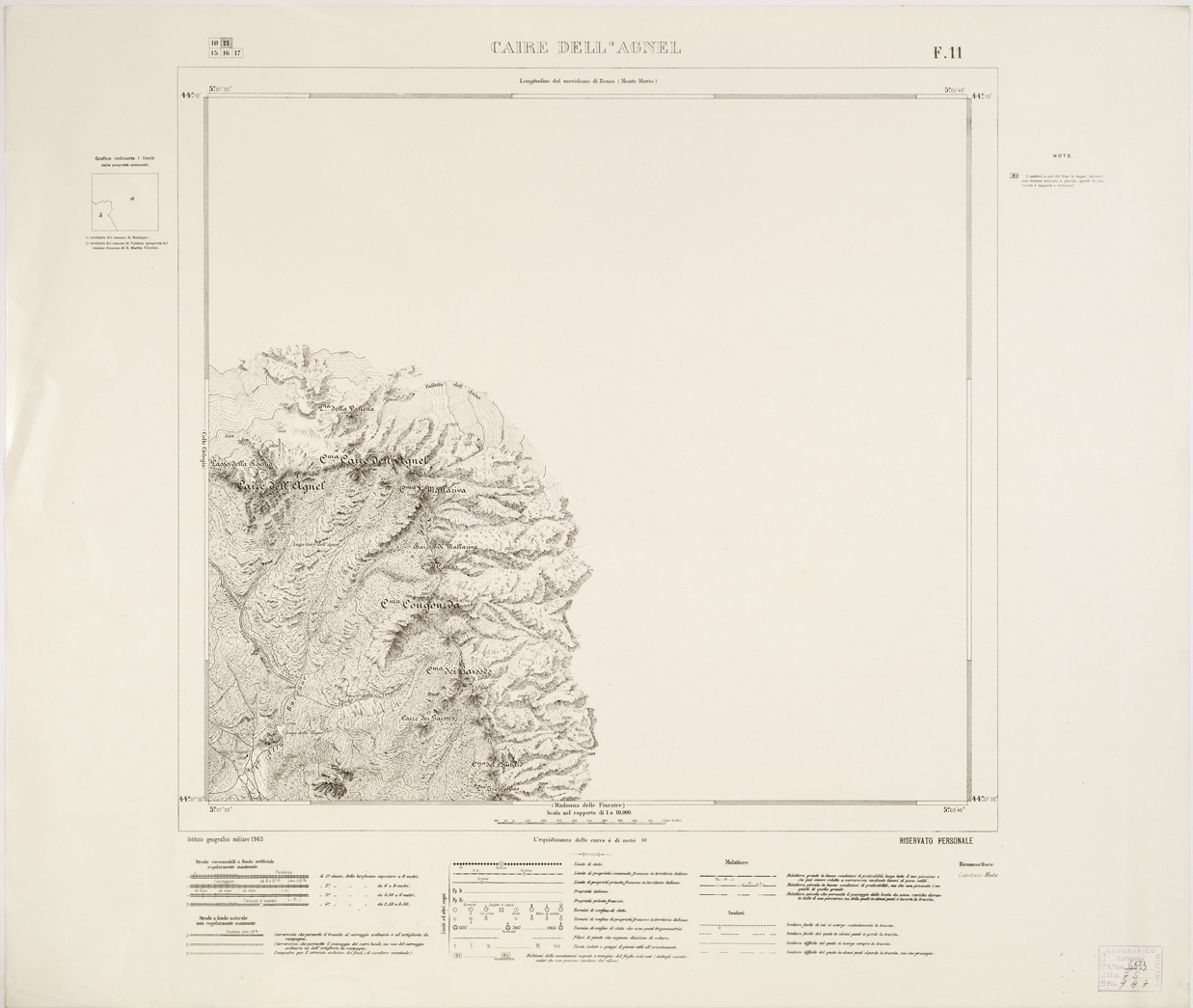 CARTA SPECIALE AL 10.000 DELLA FRONTIERA VERSO L'ALTO NIZZARDO - Foglio 11 - Caire dell'Agnel