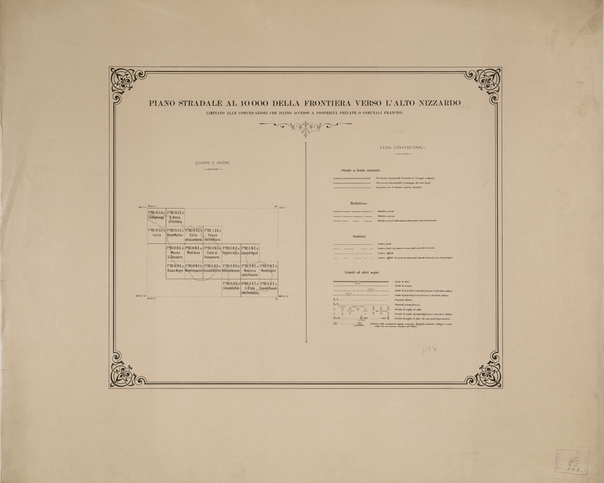 PIANO STRADALE AL 10.000 DELLA FRONTIERA VERSO L'ALTO NIZZARDO... - Quadro d'Unione