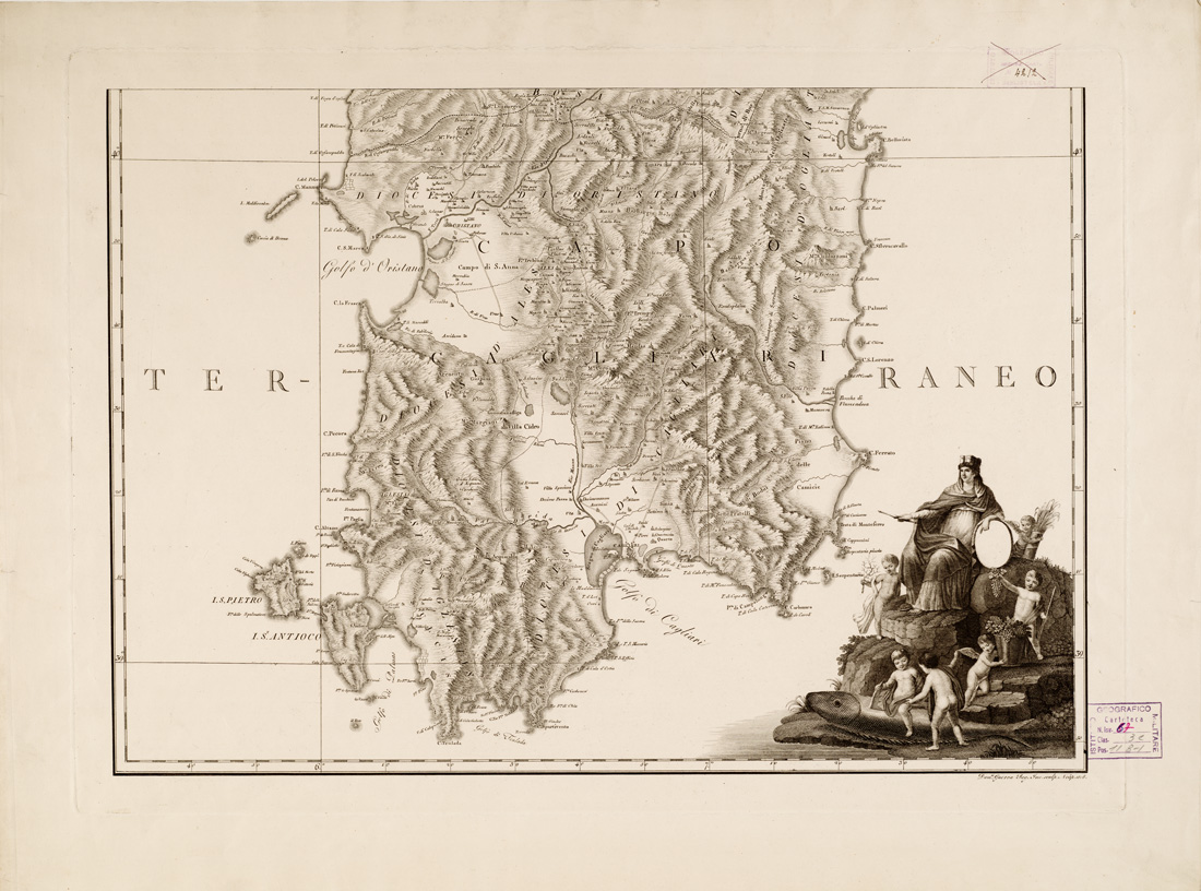 NUOVA CARTA DELL'ISOLA E REGNO DI SARDEGNA OPERA DEL R. P. TOMMASO NAPOLI DELLE SCUOLE PIE COLLEGIATO DELL'UNIVERSITA' DI CAGLIARI, E DEL CAV. RIZZI-ZANNONI DIRETTORE DEL BURO' TOPOGRAFICO DELLA GUERRA PRESSO S. M. IL RE DELLE DUE SICILIE, 1811.