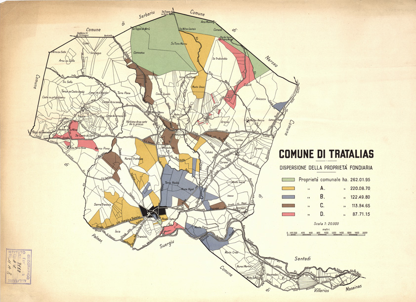 "Rappresentazione orografica planimetrica. A destra trovasi la legenda della dispersione della proprietà fondiaria."