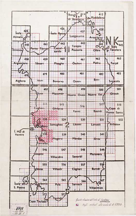 CARTA TECNICA DELL'ITALIA MERIDIONALE - INIZIO DEI RILIEVI SARDEGNA PER CONTO DELLA CASSA PER IL MEZZOGIORNO - Quadro d'Unione