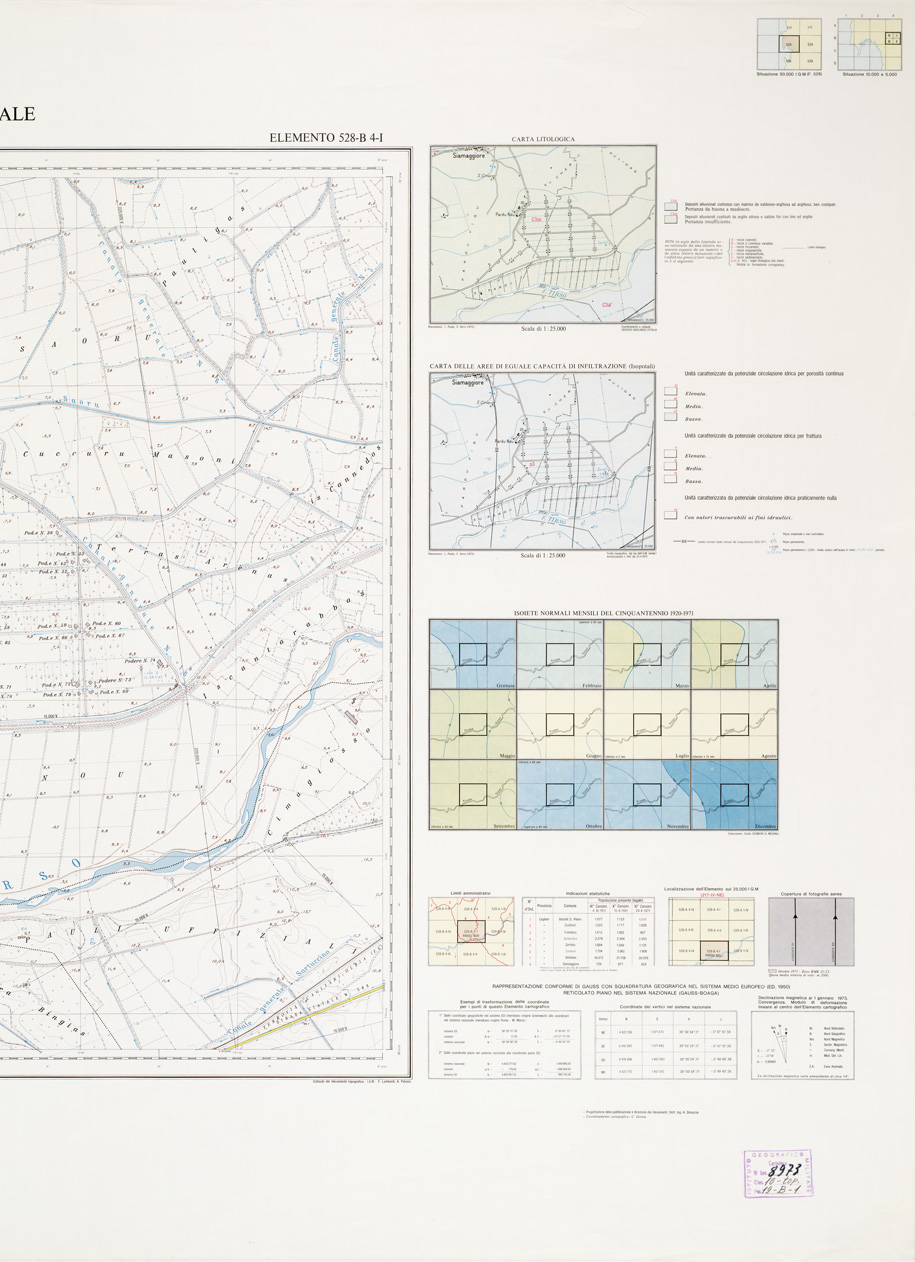 "Rappresentazione orografica a curve di livello, l'equidistanza fra le curve di livello: metri 5 per le curve a tratti metri 1. Altimetria espressa in metri e riferita al livello medio del mare (mareografo di Cagliari). Ripresa aerea, inquadramento geodetico e triangolazione aerea: I.G.M. restituzione aereofotogrammetrica, ricognizione e disegno: Aerofotogrammetria Ing. Barigazzi & C. s.n.c., Parma. Impianto cromo-fotolitografico: Ordis, Piacenza. Stampa: Pubbligraf, Napoli."