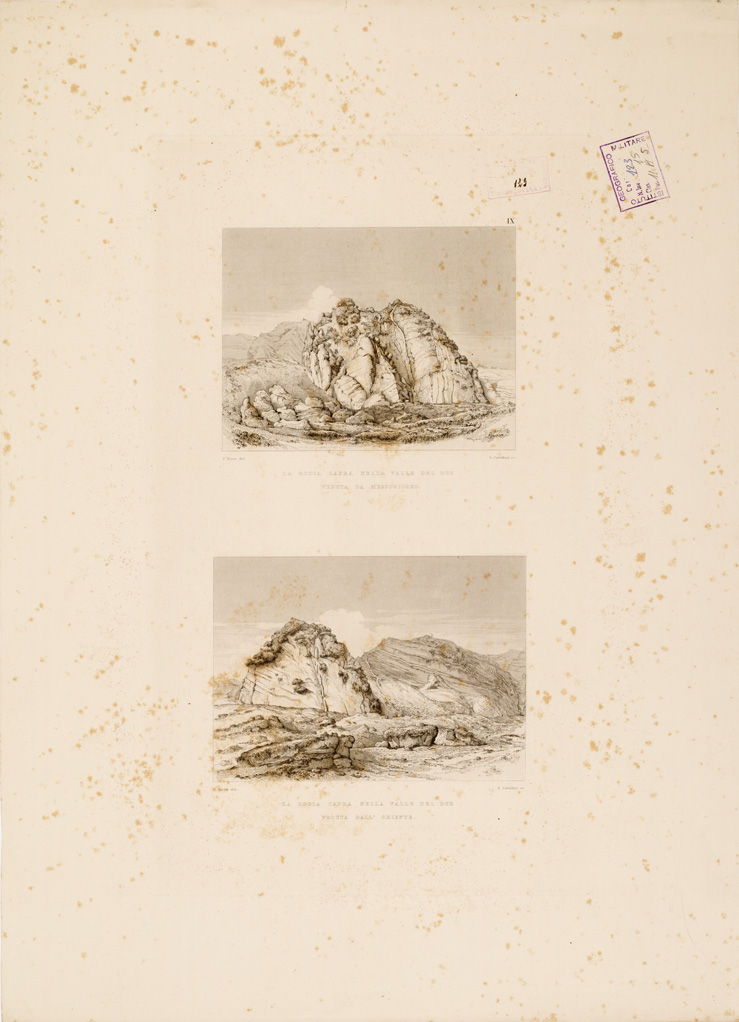 I. CARTA TOPOGRAFICA DELL'ETNA... - II. CARTA GEOLOGICA DELL'ETNA... - Veduta IX - La Rocca Capra nella Valle del Bue veduta da mezzogiorno e veduta dall'Oriente
