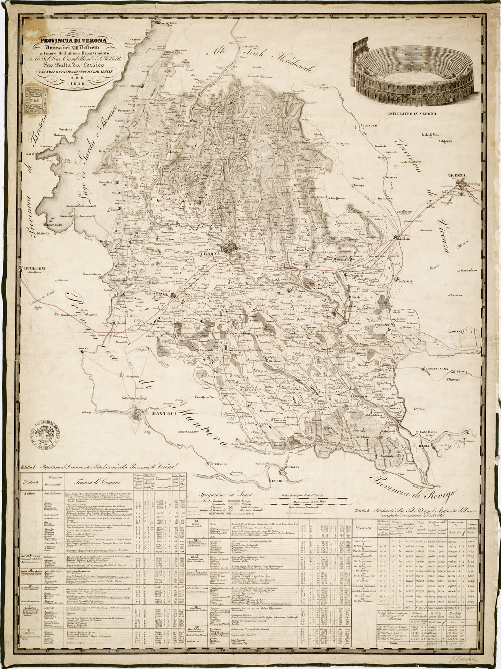 PROVINCIA DI VERONA .DIVISA IN XIII DISTRETTI A TENORE DELL'ULTIMO RIPARTIMENTO. AL NOBIL CAV. CIAMBELLANO DI S. M. P. R. GIO. BATTA DA PERSICO, CAGNOLI OTTAVIO, CRISTOFALI GIO. ALVISE D. D. D. LIT. GUELMI IN VERONA.