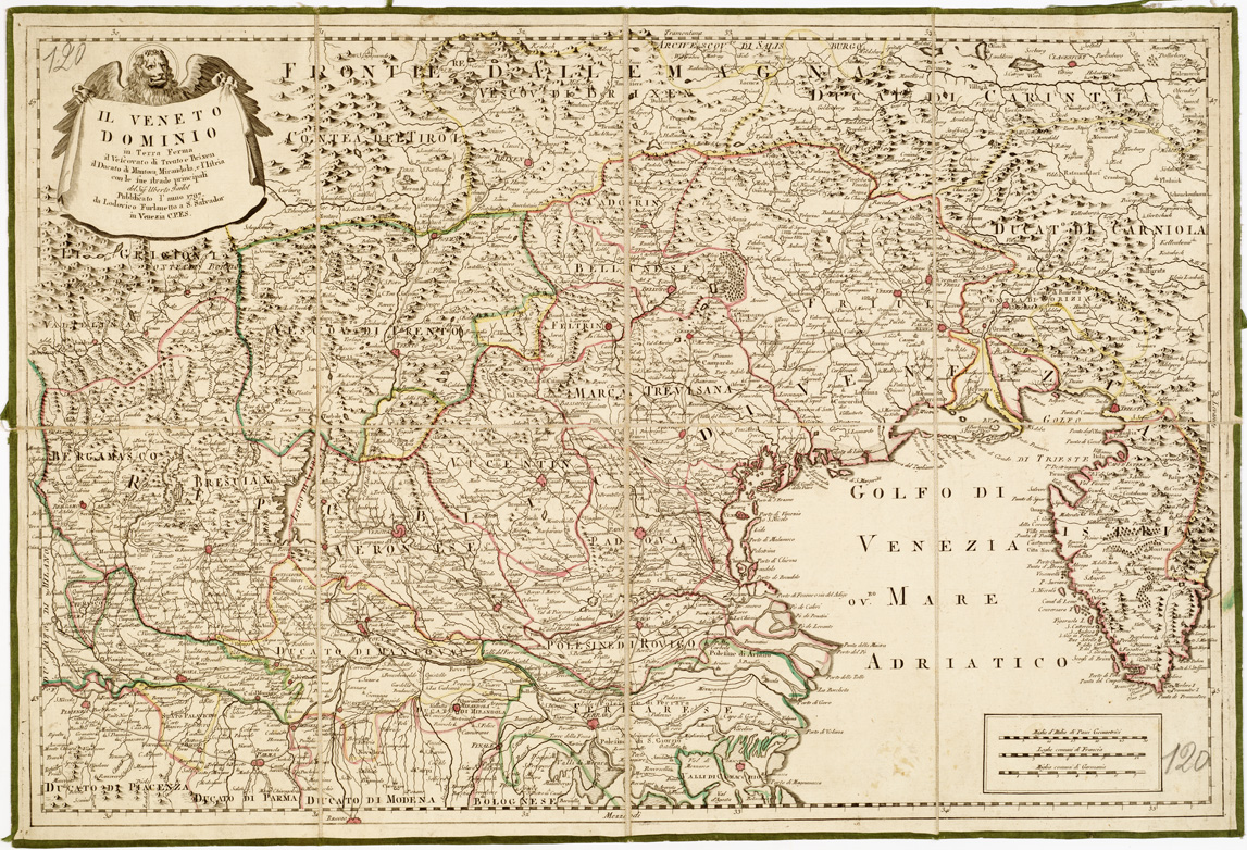 IL VENETO DOMINIO IN TERRA FERMA IL VESCOVADO DI TRENTO E BRIXEN, IL DUCATO DI MANTOVA, MIRANDOLA, E L'ISTRIA CON LE SUE STRADE PRINCIPALI DEL SIG. UMBERTO JAILOT. PUBBLICATA L'ANNO 1797 DA LODOVICO FURLANETTO A S. SALVADOR IN VENEZIA C. P. E. S.