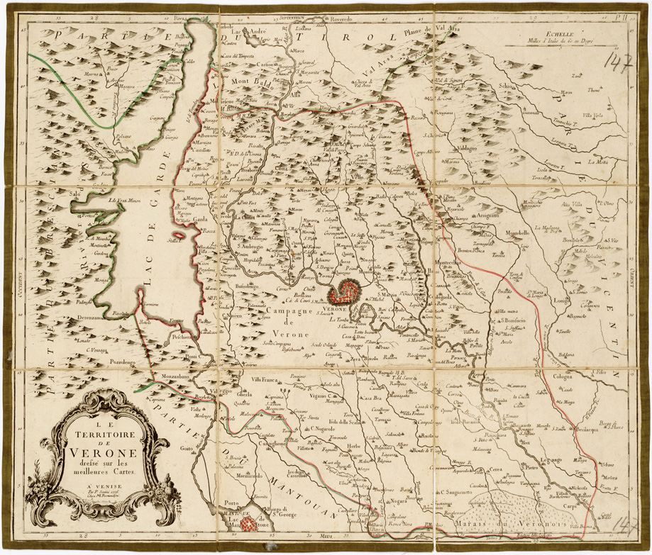 LE TERRITOIRE DE VERONE DRESSE SUR LES MEILLEURES CARTES. A VENISE PAR P. SANTINI. CHEZ M. REMONDINI.