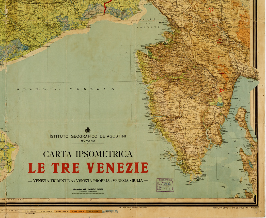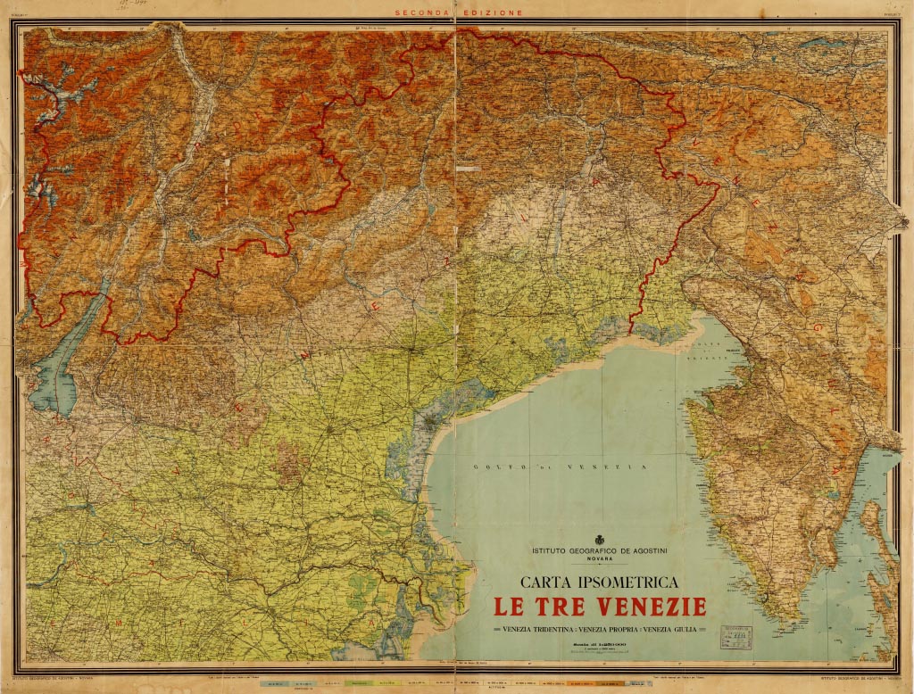 CARTA IPSOMETRICA LE TRE VENEZIEVENEZIA TRIDENTINA, VENEZIA PROPRIA, VENEZIA GIULIA