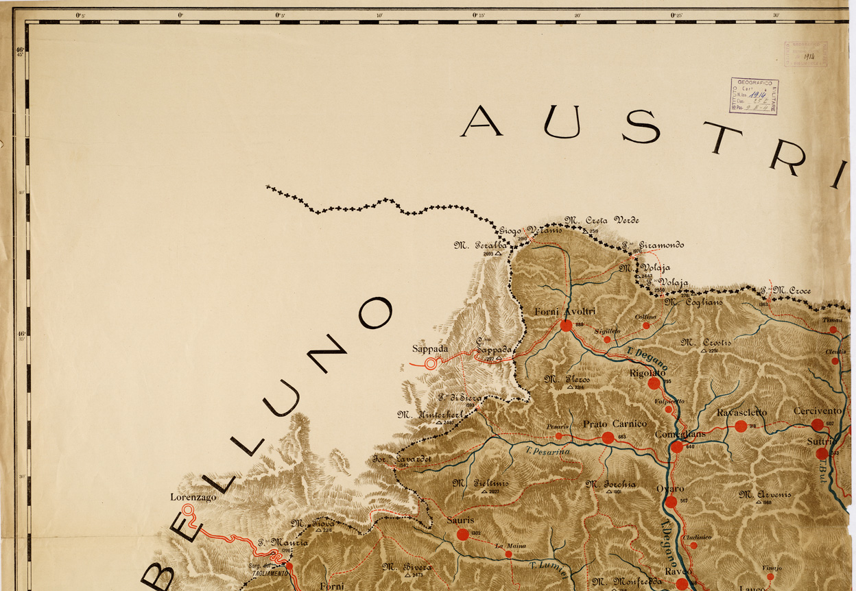 La “Grande Guerra” rallentò notevolmente l´attività topocartografica programmata e quasi tutte le energie dell´Istituto furono profuse per i lavori topografici di supporto alle operazioni militari. Dopo il trattato di pace i primi lavori cartografici riguardarono i territori redenti.