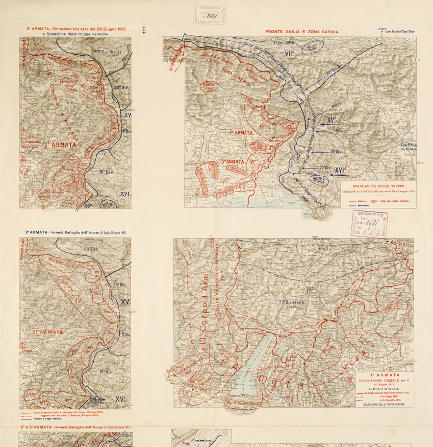 CARTA DELLE DISLOCAZIONI DELLE TRUPPE DELLE VARIE ARMATE - GIUGNO - AGOSTO 1915