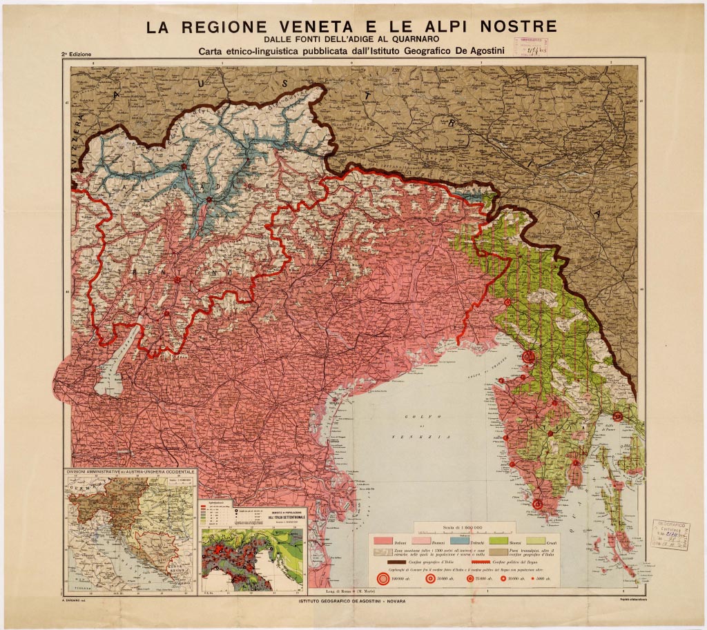 LA REGIONE VENETA E LE ALPI NOSTRE - DALL'ADIGE AL QUARNARO - CARTA ETNICO LINGUISTICA - 2a edizione