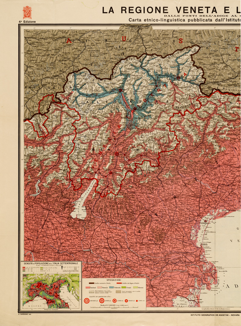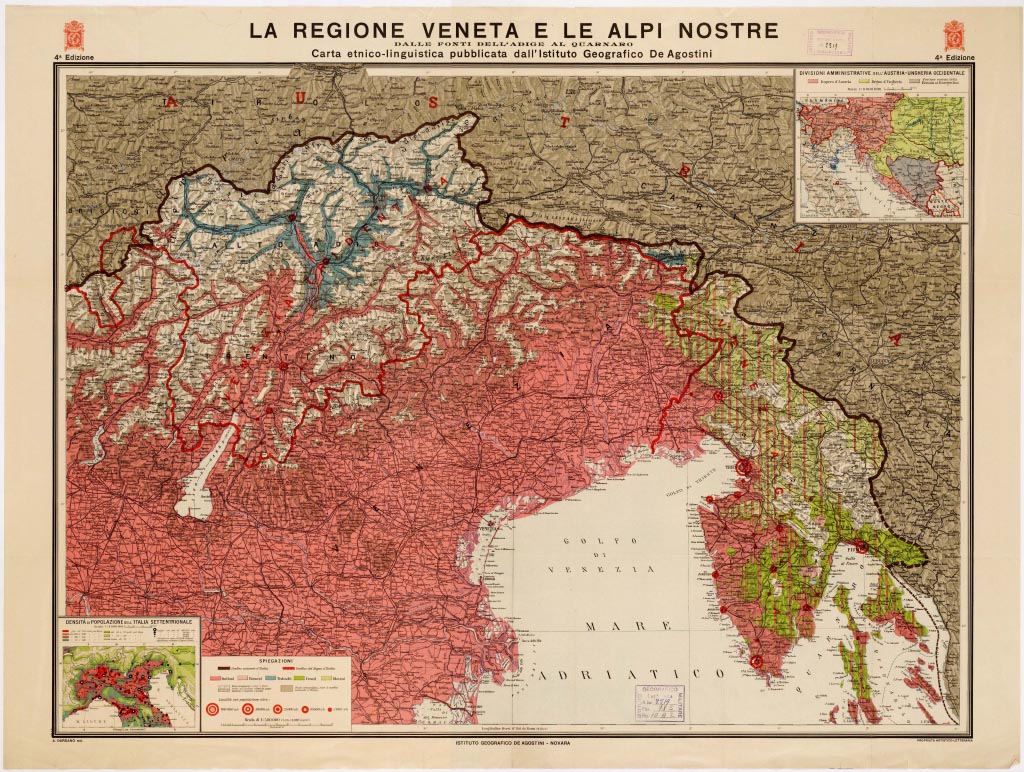 LA REGIONE VENETA E LE ALPI NOSTRE - DALL'ADIGE AL QUARNARO - CARTA ETNICO LINGUISTICA - 4a edizione
