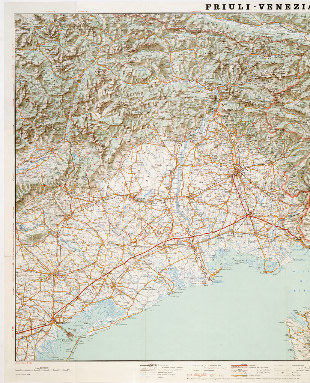 "A cura della Camera di Commercio Industria e Agricoltura di Udine. Ed. Grafiche G. Chiesa. Carta derivata dai tipi dell' I.G.M."