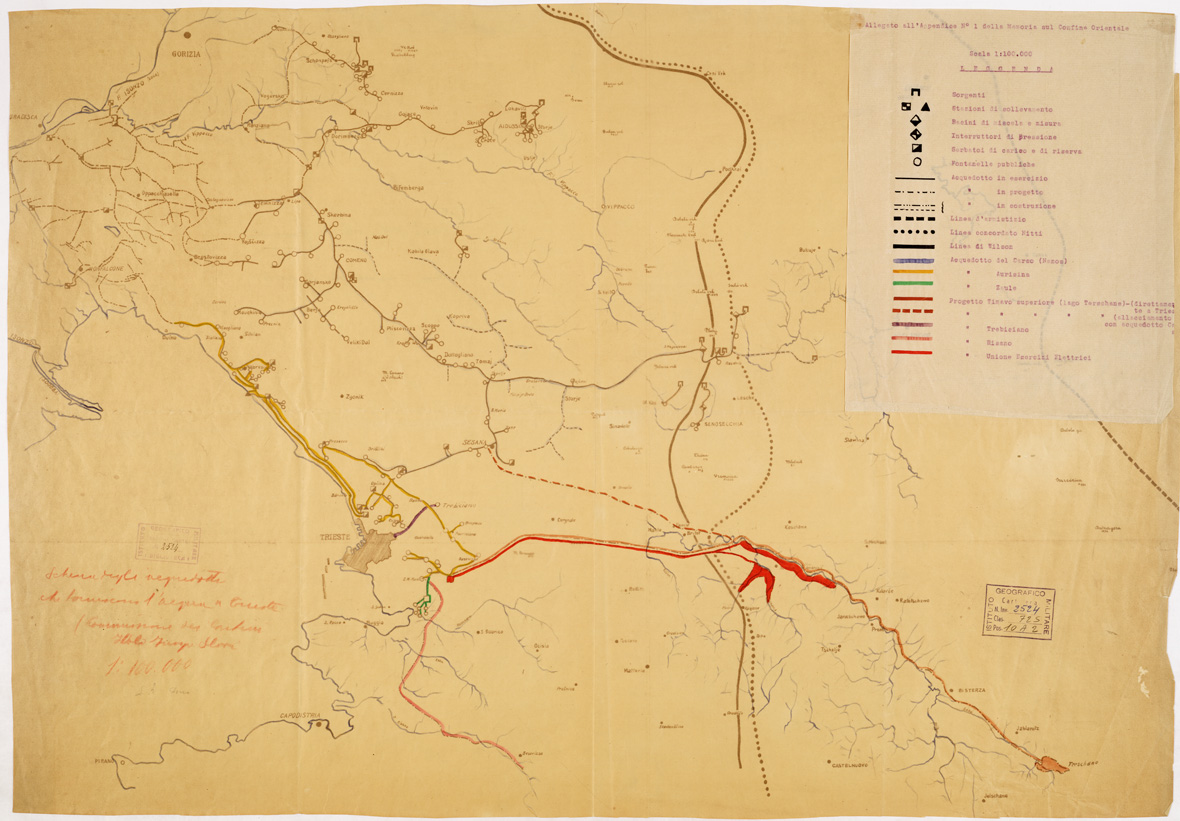 SCHEMA DEGLI ACQUEDOTTI CHE FORNISCONO L'ACQUA A TRIESTE - Legenda