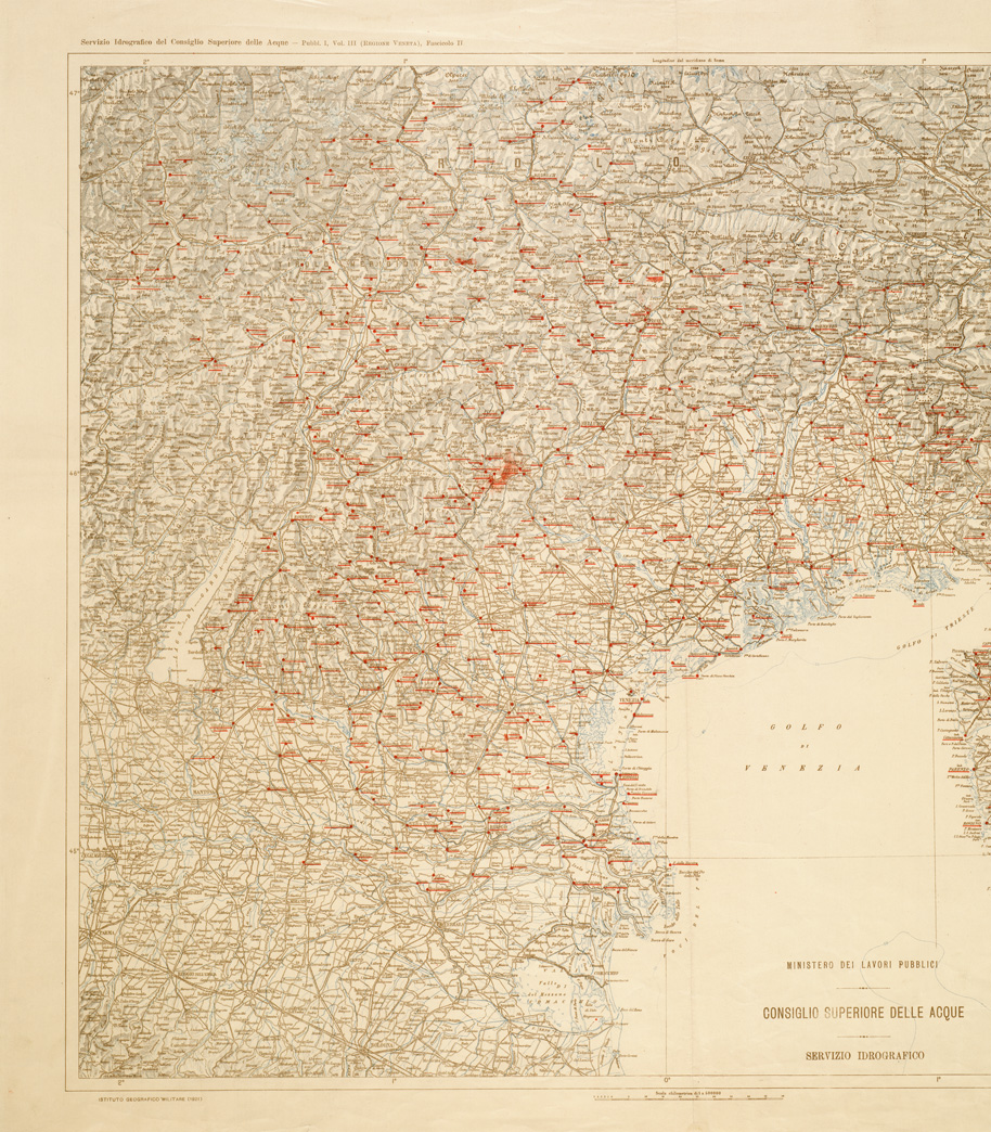 "Ministero dei lavori pubblici - Consiglio Superiore delle Acque - Servizio Idrografico. Rappresentazione orografica a sfumo. Ed. I.G.M. - Firenze."